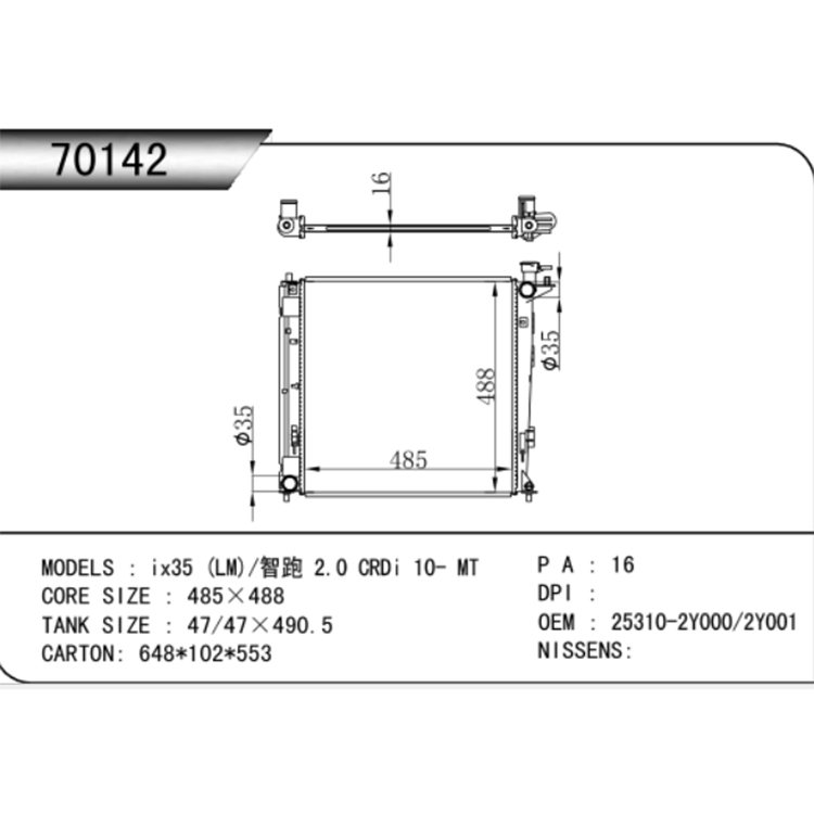 1. TUCSON 2010 2.0 IX35 अटो रेडिएटर मूल मोल्ड प्रयोग गरेर विकसित गरिएको छ र मूल कारको एक-देखि-एक एसेम्बली पूरा गर्दछ।